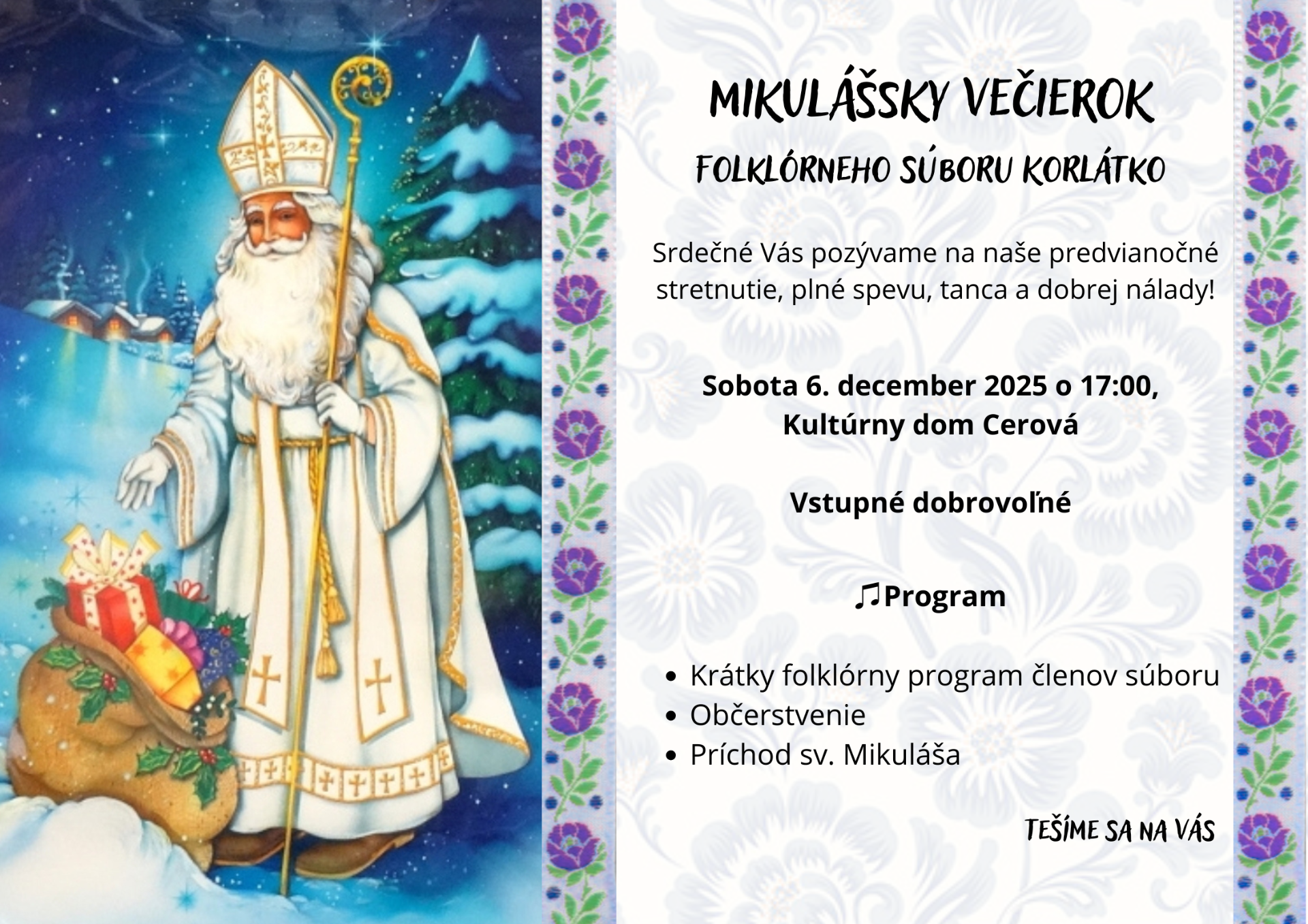 Všetkých srdečne pozývame na Mikulášsky večierok!